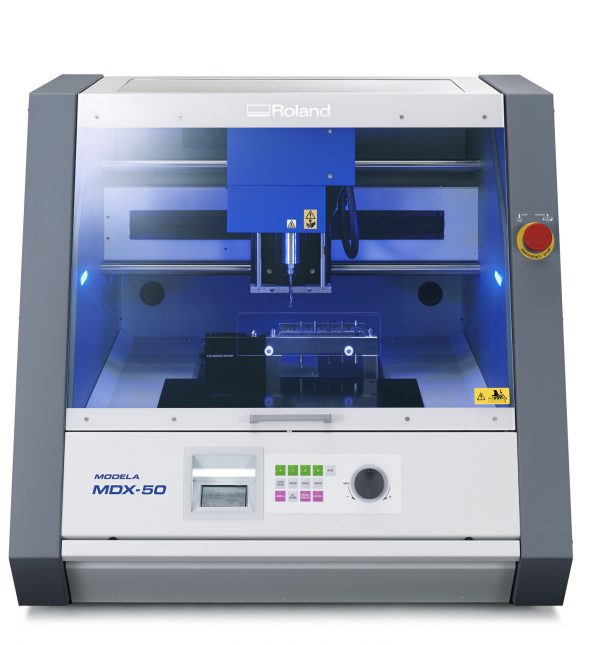 The MDX-50 has been designed for safe and trouble-free operation, making it ideal for use in studios and educational environments. The cover ensures safe operation and waste is contained in the integrated dust tray to create a cleaner, more comfortable working environment. Current job status can be monitored from a distance with the colour-coded LED status lights and the illuminated work area makes mounting materials easier and safer.