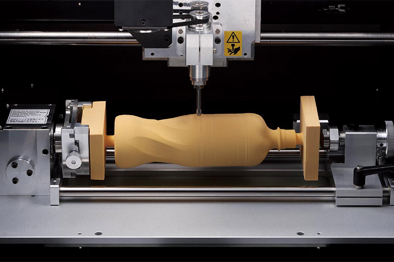 The MDX-50 features an ATC (Automatic Tool Changer) as standard, to allow unattended operation day and night. The auto-sensing function corrects the tool length to ensure milling accuracy for every job. The optional rotary axis rotates materials automatically from 0 to 360 degrees continuously or indexes for 2-sided, 4-sided and custom angles to enable the easy and efficient production of pieces with complex surfaces. Thanks to the ATC and rotary axis units, once milling begins users can leave the device to run unattended with confidence, enabling them to get on with other jobs.